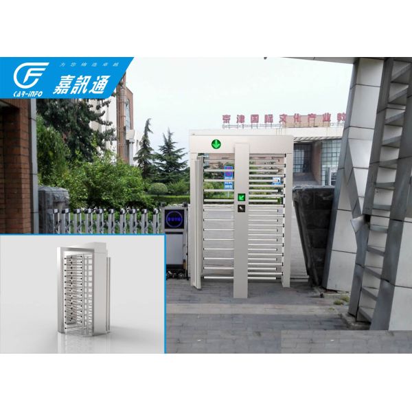 outdoor access control full height turnstile with barcode scanner system install in gym